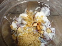 2. Mix 4oz. yogurt, 2oz. cream cheese, 2T. truvia, and 1t. vanilla, and stir until well blended.